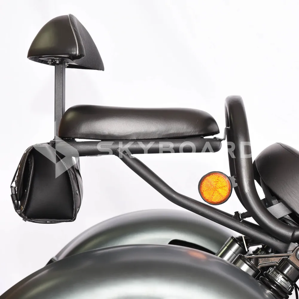 Электроскутер SKYBOARD TRIKE CHOPPER-4000 PRO FASTмощный и эксклюзивный, первое, что приходит на ум при визуальном ознакомлении с техникой. Изогнутая рама, брутальный дизайн наталкивают на мысли о максимальных скоростях и непередаваемых ощущениях. Со слов производителя предчувствие клиентов является правильным.