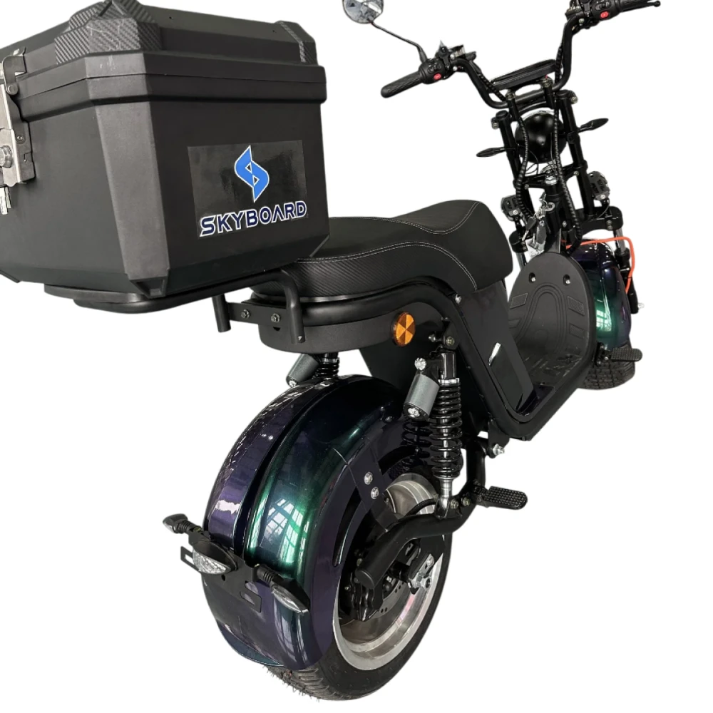 Скутер оборудован двумя независимыми электродвигателями по 1950 Вт каждый, что в совокупности даёт 3900 Вт тяги. Это обеспечивает уверенное движение, разгон до 60 км/ч, отличную устойчивость и возможность преодолевать подъёмы до 35°.