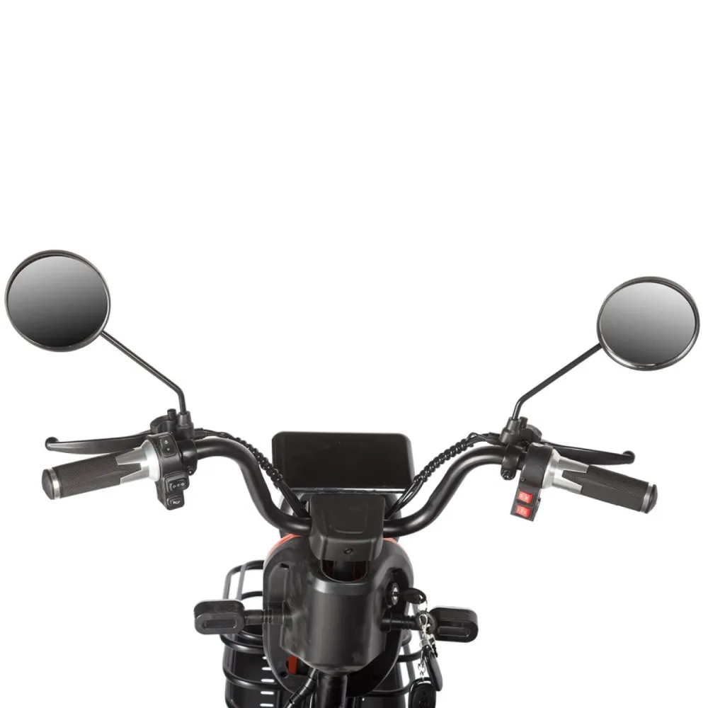 • Дополнительное оснащение: Большой LCD-дисплей информирует о текущих параметрах движения, а яркая светодиодная фара и поворотники обеспечивают отличную видимость в темное время суток. Также модель оснащена встроенной сигнализацией для дополнительной защиты, а передняя металлическая корзина добавляет удобства при перевозке небольших вещей.Электротрицикл Rutrike Gelbert Caf – универсальное решение для тех, кто ценит практичность и современный дизайн. Он станет отличным выбором для ежедневных поездок по городу, позволяя с комфортом перемещаться в условиях интенсивного городского трафика.