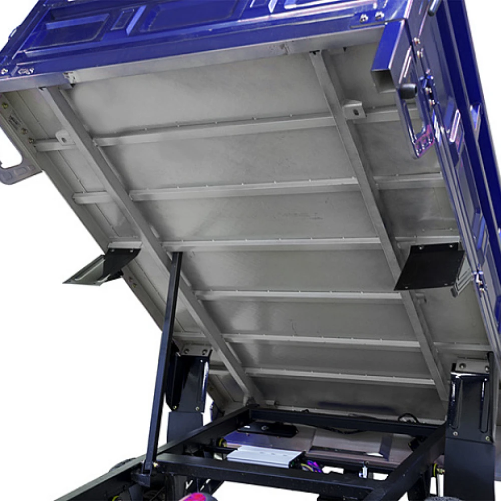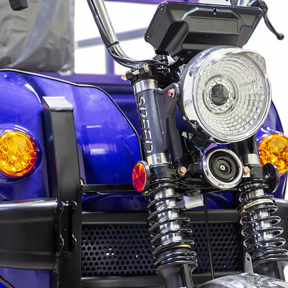 Мощность двигателя составляет 1500 Вт, в сочетании с гелевой тяговой батареей модель способна развивать скорость до 25 км/час и преодолевать 80 км пути. Модель оснащена вместительным кузовом, рассчитанным на грузоподъемность 1т. Управлять элеткротрициклом просто. Всесезонная техника оснащена зеркалом заднего вида, мощной светодиодной фарой, удобным комфортным сиденьем. При эксплуатации транспорта производитель предупреждает об осторожности нахождения под кузовом в поднятом состоянии. Фиксация кузова на предусмотрена в положении подъема.