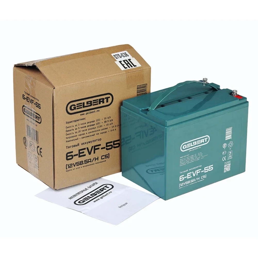 Тяговый аккумулятор Gelbert 6-EVF-55 (12V58.5A/H C5)