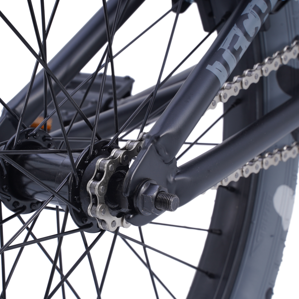 Алюминиевые обода и покрышки Wanda 20x2.4 обеспечивают отличное сцепление, а лёгкие педали Wellgo V-205DU гарантируют надёжность при прыжках и грайндах. Тормозная система U-brake из алюминия обеспечивает чёткое торможение, когда это необходимо.